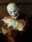 Rare Antique Hand Painted Monk Holding Pig Majolica Pottery Tobacco Jar Humidor