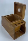 Vintage Walnut 12 Pipe Holder Stand With Glass Tobacco Jar Humidor Mcm