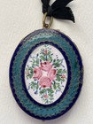 Vintage Guilloche Enamel Rose Black Compact Round Rouge Puff Mirror Vanity