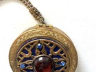 Antique Double Sided Guilloche Enamel Gold Gilt Pendant Mirror Compact Pill Box
