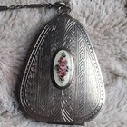 Antique Floral Basket Silver & Guilloche Enamel Compact Purse Completely Intact