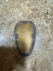 Antique Compact Finger Ring Chain Silver Tone Emboss Blue Enamel No Powder Read