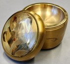 Vintage Confetti Lucite Top Powder Compact Vanity Case Gold Tone Hinged