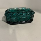 Vintage Emerald Green Powder Box Jewel Box Fenton Glass Handpainted
