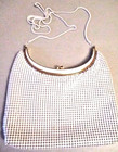 Vintage White Mesh Gold Tone Accents White Metal Strap Lined Shoulder Bag Purse