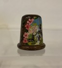 Vintage Wood Wooden Hand-painted Flower Collectible Sewing Thimble Switzerland