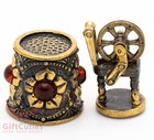 Solid Brass Amber Thimble With A Spindle Lid On A Magnet Ironwork
