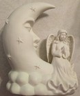 White Porcelain Winged Angel With Man In The Moon Night Light/lamp 8"x6"x2" Vgc