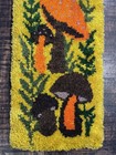 Vintage 70s Retro Mushroom Garden Boho Latch Hook Rug Wall Hanging Mcm