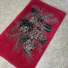 Vintage Large Plush Red Pinecone Winter Scene Latch Hook Rug Completed 45” X27”
