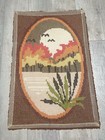 Vintage Latch Hook Rug Wall Hanging Lake Scene 35x24