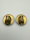 Hermes Trumpet Motif Round Button Earrings - Gold Color