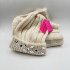 Betsey Johnson Infinity Scarf W/ Hat Embellished Ivory Holiday Gift Set Nwt