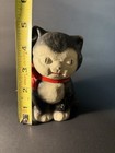 Cast Iron Black & White Cat Coin Bank Red Bow 4.75”