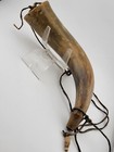 Antique Civil War Era Powder Flask Of Natural Horn With Leather Shoulder Strap