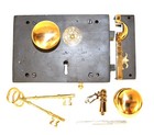 Right Hand Wrought Iron Colonial Carpenters Rim Lock With Brass Knobs