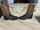 Stetson Bridger Black Goat Leather Black Brown Square Toe Cowboy Boots 9 D