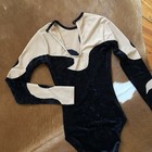 Vtg Velvet Long Sleeve Leotard Size 2 Black And Beige, Figure Skating Gymnastics