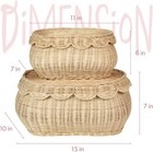 2pcs Rattan Wicker Baskets W/ Lid – Small Handwoven Scalloped Storage