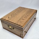 Vintage Solid Oak Wood Silverware Flatware Storage Chest Box W/drawer