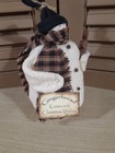 Handmade Primitive 6-1/2" Winter Christmas Snowman With Gingerbread & Sign