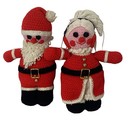 Vintage Handmade Crocheted Mr. And Mrs. Santa Claus Dolls Set Red 1970’s