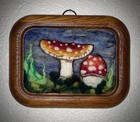 Modern Needle Felted Tufted Mushroom Wall Hanging Picture In Vintage Frame