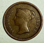 Straits Settlements 1 Cent Coin, No Date (1872-1883), Queen Victoria