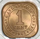 High Grade Au 1961 Malaysia British Borneo One Cent-square-feb535
