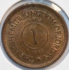 1955 Jordan Bronze 1 Fils Coin - One Fils - Kingdom Of Jordan - 200,000 Minted
