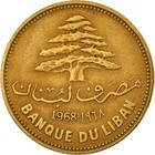 Lebanon | 25 Qirsha / Piastres Coin | Cedar Tree | Km:27.1 | 1968 - 1980