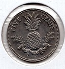 1975 Bahamas 5 Cents Circulated - Km# 60 - Pineapple - 3.9g - Copper Nickel