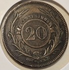 1857 D Uruguay 20 Centimos Copper Coin - Free Shipping!