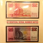 ~ 1991 Singapore-ship-series-2-identical Serial Number $2 Bank Notes