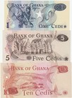 Ghana Set 3 1 5 10 Cedis Banknotes 1975,77,78 Uncirculated Condition Pick#13-16