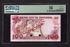Tanzania 100 Shilings Nd(1977) P8ds Specimen Uncirculated Grade 64 Top Pop