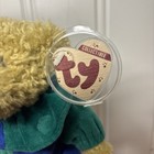Ty Attic Treasures Collection Bear Brown Green Vest Ribbon W/ Rose Jointed 8.5"
