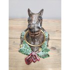 Vintage Large Cast Iron Horse Head Hand Painted Door Knocker Or Tie Ring - 11"