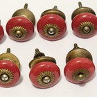 Red Ceramic Drawer Knobs Pulls Set Of 14 Brass Center Vintage Style Hardware