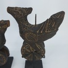 Pair Of Antique Chicken Motif Handcarved Burmese / Burma Wooden Loom Pulleys 5"