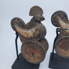 Pair Of Antique Chicken Motif Burmese / Burma Wooden Loom Pulleys 4.5"