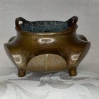 Antique Chinese Qing Dynasty Bronze Censer Marked Zhenwan. 17th-18th Century.