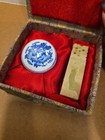 Vintage Chinese Peace Seal Stamp And Red Ink Paste Silk Box Set
