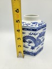 Antique Ming Dynasty Porcelain Hexagonal Tea Caddy Jar No Lid Blue White Dragon