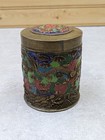 Chinese Etched Brass Tea Caddy Mt Fuji Birds Lidded Vintage Made In Hong Kong
