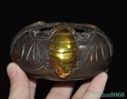 3.2' Chinese Bronze Gilt Feng Shui Bat Wealth Coin Pen Wash Ashtray Statue