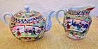 Japanese Satsuma Green Rose Medallion Teapot Lid Creamer Sugar Bowl Set Figures!