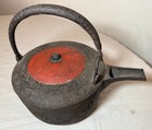 Antique Japanese Tetsubin Iron Sake Pot W/ Red Lacquer Lid Meiji Period Beauty