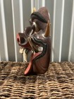Vintage Wood Carved Turban Head Bust Mask Wood Base