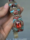 8.2" Ancient China Silver Inlay Turquoise Red Coral Gem Dynasty Jewelry Bracelet